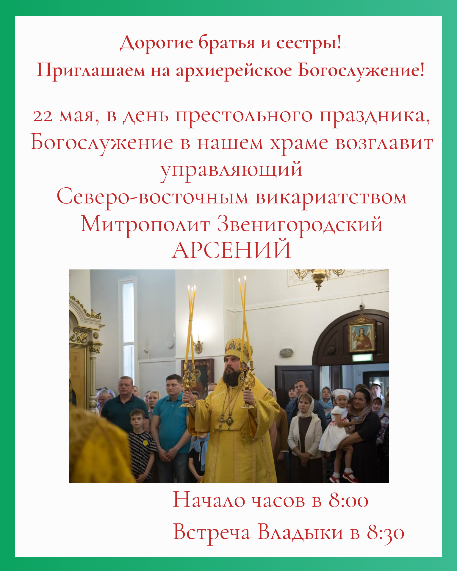 Приглашаем всех на праздничные Богослужения в честь престольного праздника нашего храма!