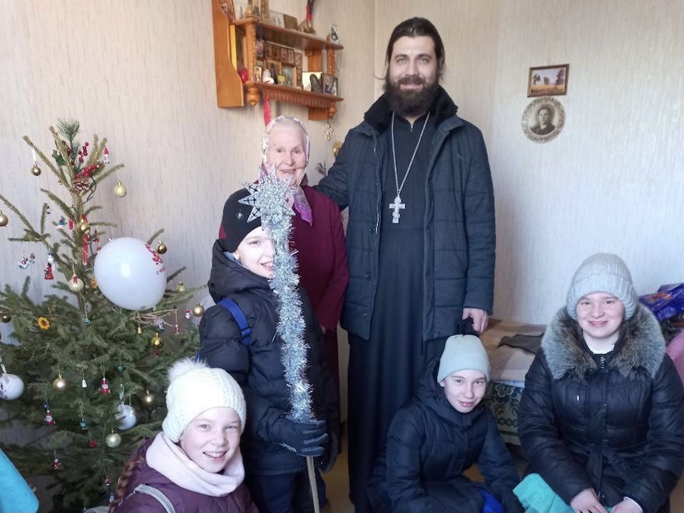 Также в этот день настоятель нашего храма иерей Димитрий Киосе совместно с социальной службой и многодетной семьей наших прихожан поздравили пожилых людей, которые по состоянию здоровья уже не могут посещать Богослужения. Дети с радостью спели для них рождественские песни и колядки. Бабушки были очень рады поздравлениям и тронуты вниманием.