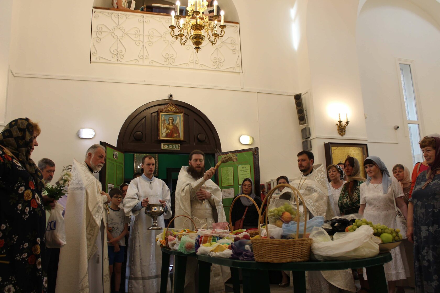 По окончании Литургии было совершено молебное пение и освящение принесенных плодов.