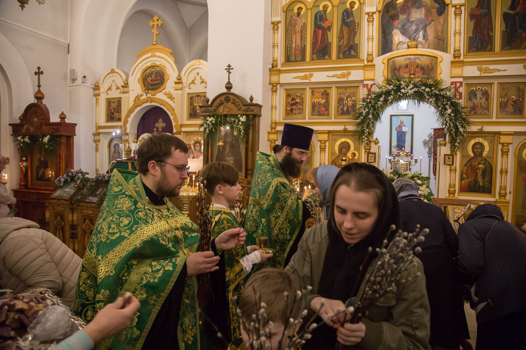 27-28 апреля, в дни праздника Входа Господня в Иерусалим, в нашем храме прошли праздничные Богослужения. В субботу на Всенощном бдении после полиелея было совершено «освящение ваий (вербы)». В воскресенье состоялась Божественная Литургия, которую возглавил иерей Димитрий Киосе, настоятель нашего храма.