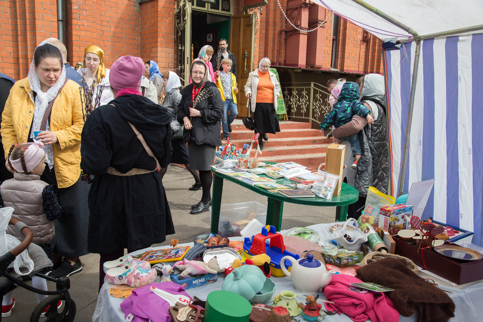 По окончании Литургии всем прихожанам было предложено угощение и горячий чай. А на территории храма прошла небольшая ярмарка.