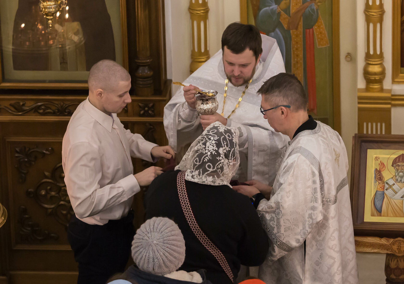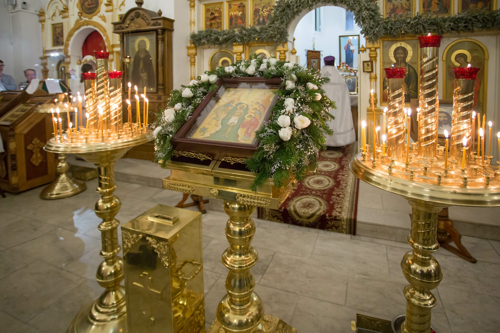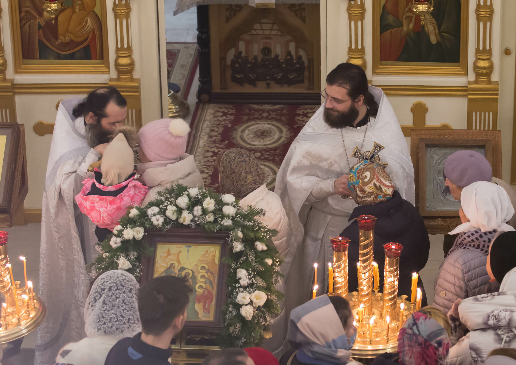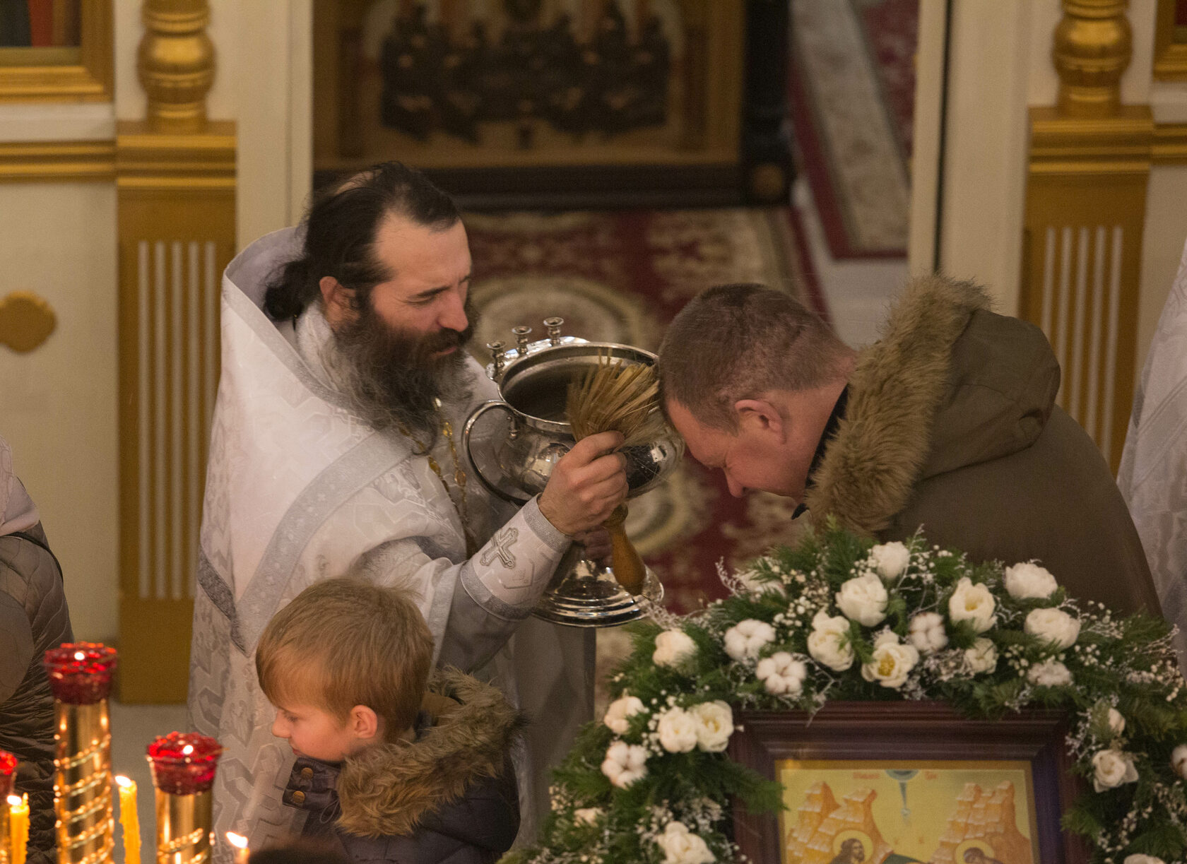 В завершение праздничной Литургии отец Димитрий поздравил прихожан с праздником и обратился с пастырским словом.