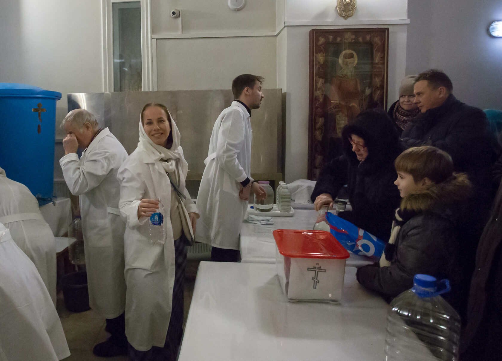 В этот двунадесятый праздник в храме святителя Николая Мирликийского, Патриаршего подворья в Отрадном г. Москвы была совершена Божественная Литургия, а затем по заамвонной молитве при пении тропарей «Глас Господень на водах», в центре храма было совершен чин великого освящения воды.