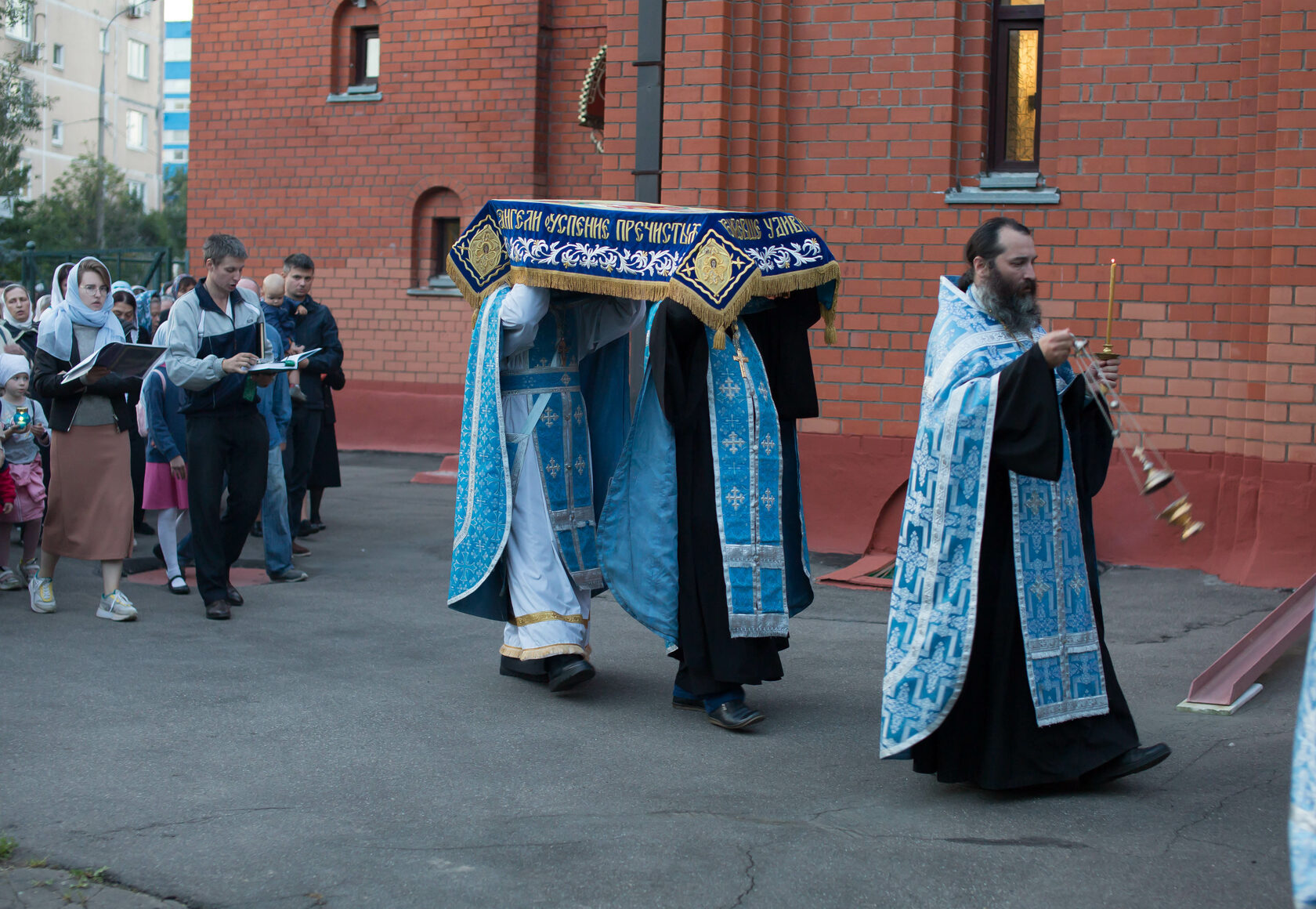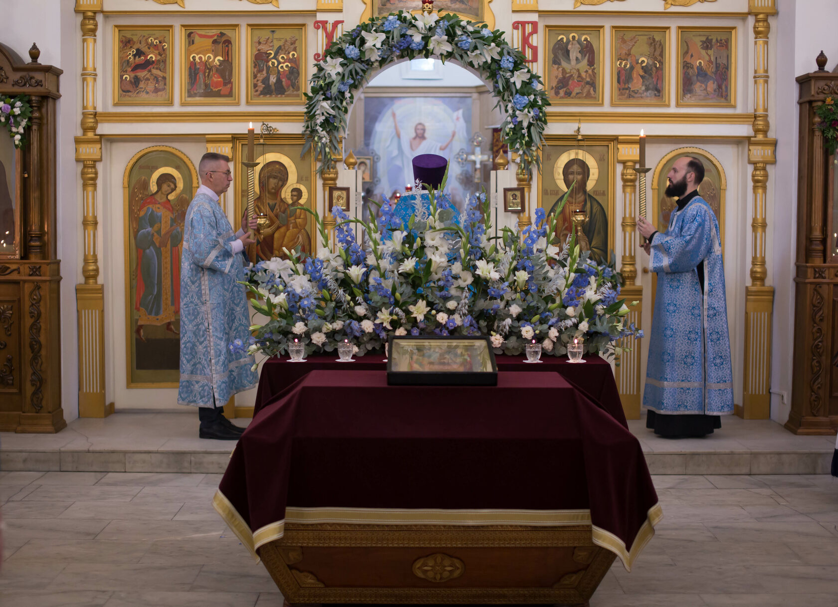 27 августа, накануне праздника, состоялось Всенощное бдение с чином погребения плащаницы.
