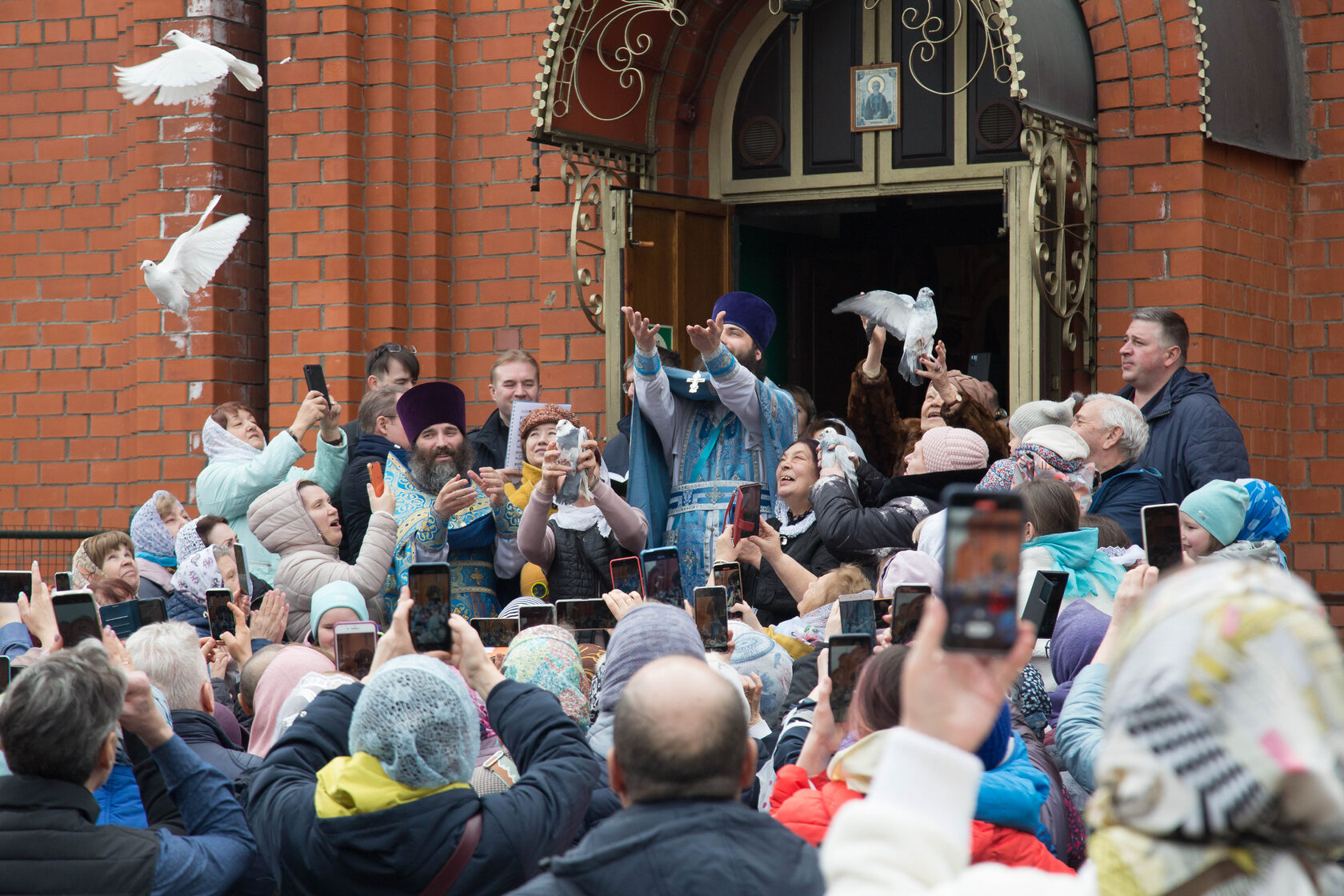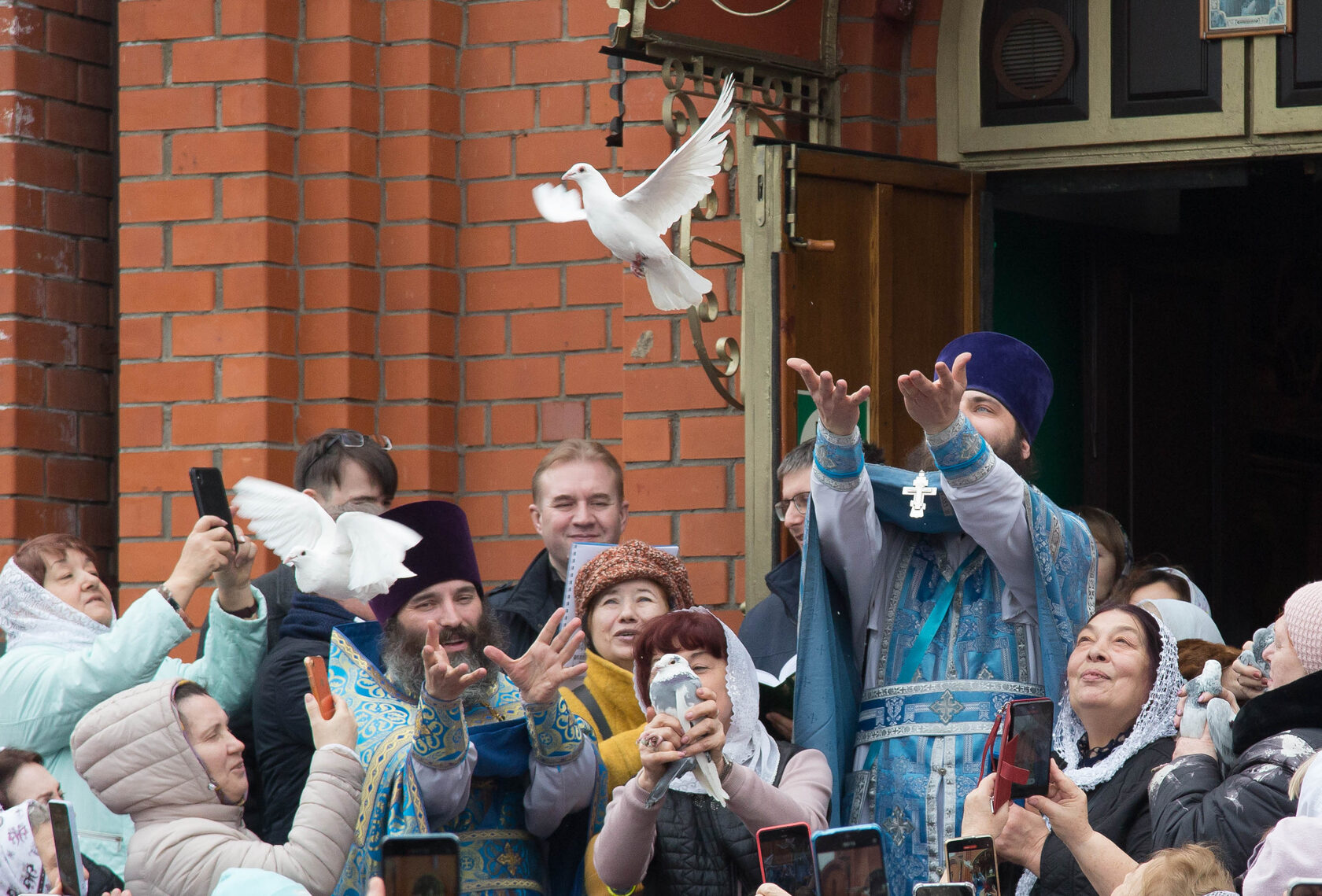 6-7 апреля, в день праздника Благовещения Пресвятой Богородицы, в нашем храме состоялись праздничные Богослужения. По окончании Литургии был совершен молебен, а затем по доброй традиции настоятель нашего храма совместно с клиром и прихожанами выпустили в небо белых голубей. Белый голубь с древних времён олицетворяет мир и добрые известия. Кроме того, голубь является символом Святого Духа, а его белоснежные крылья — одновременно символом чистоты самой Девы Марии.