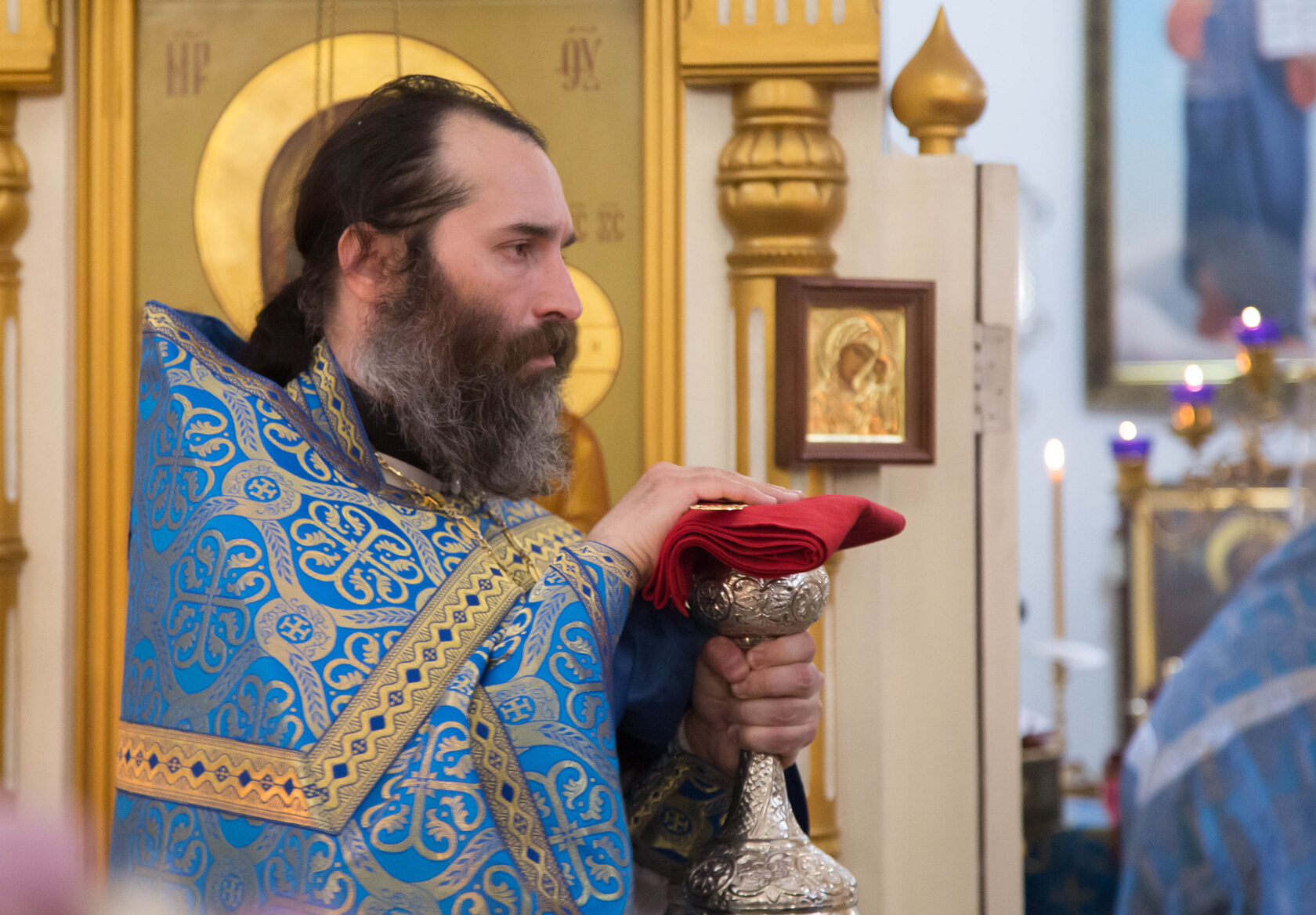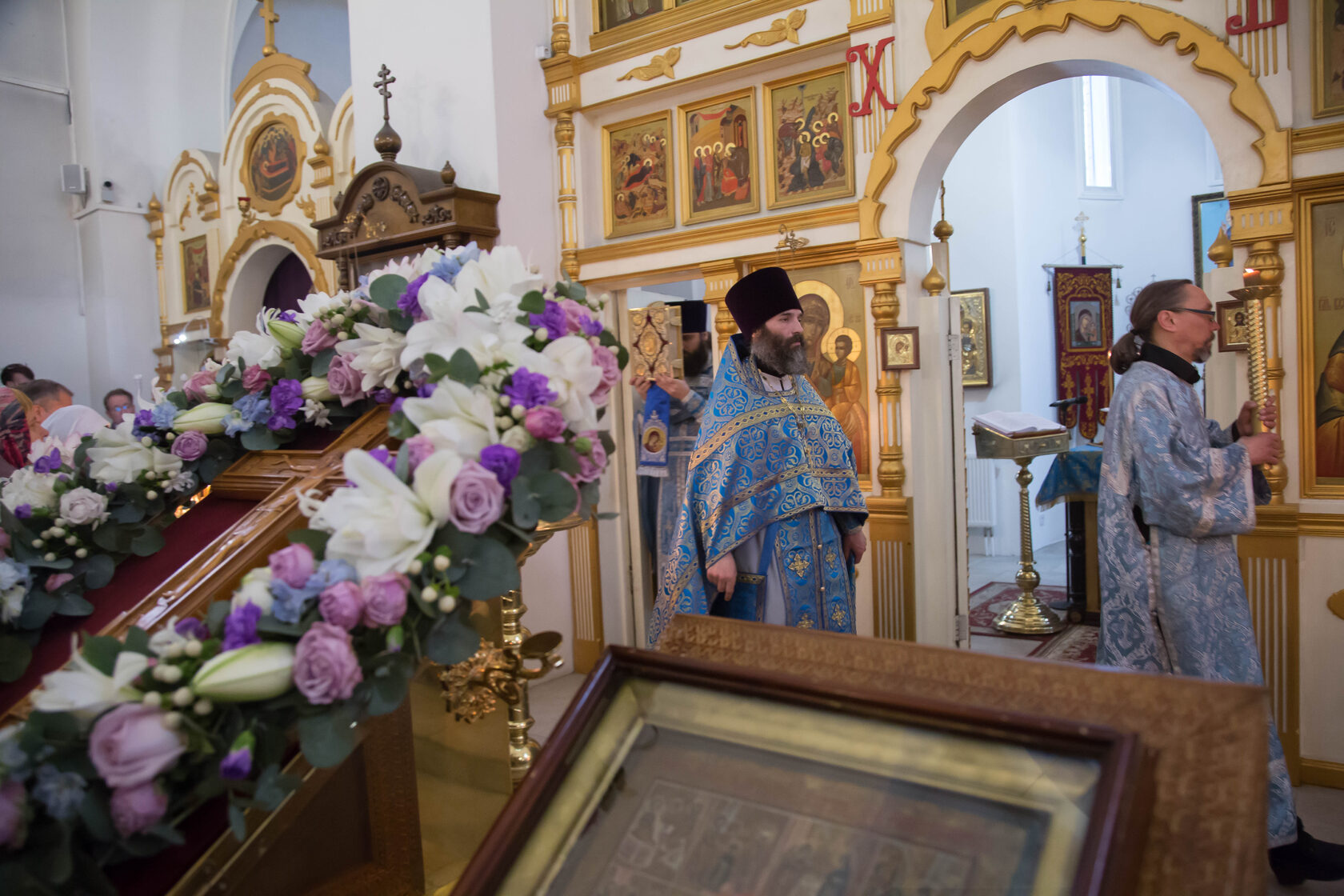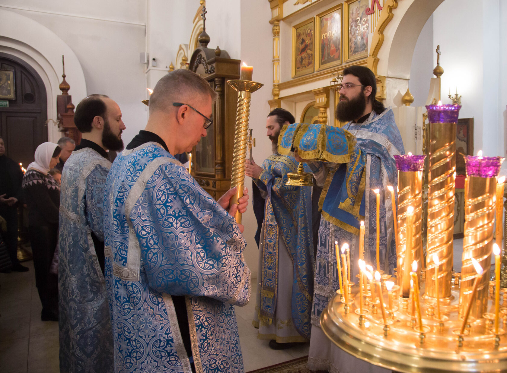В этом году 7 апреля также было посвящено Кресту Господню, поэтому накануне 6 апреля на всенощном бдении на середину храма был вынесен украшенный крест. Крест будет находиться в центре храма до пятницы, когда его внесут обратно в алтарь.