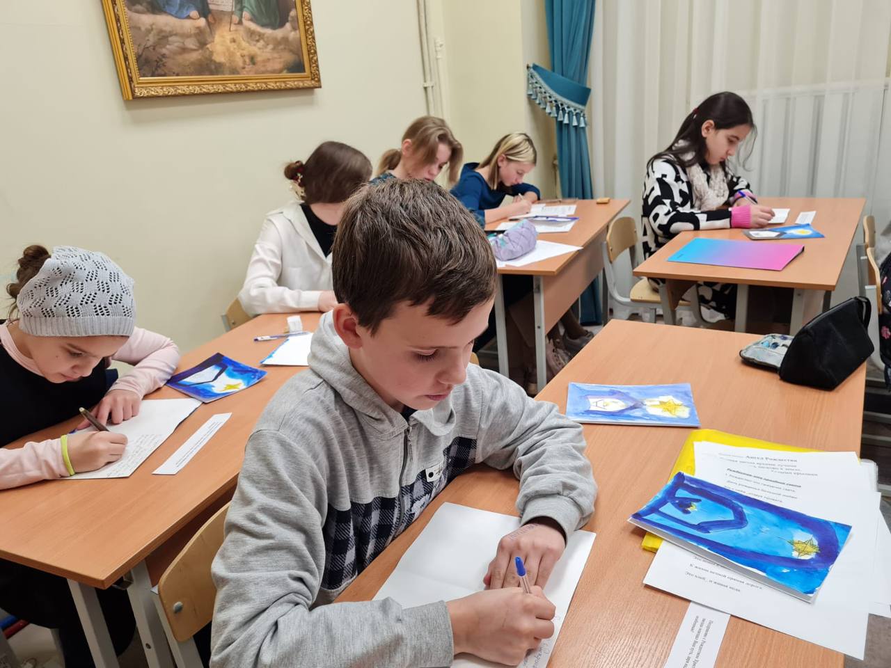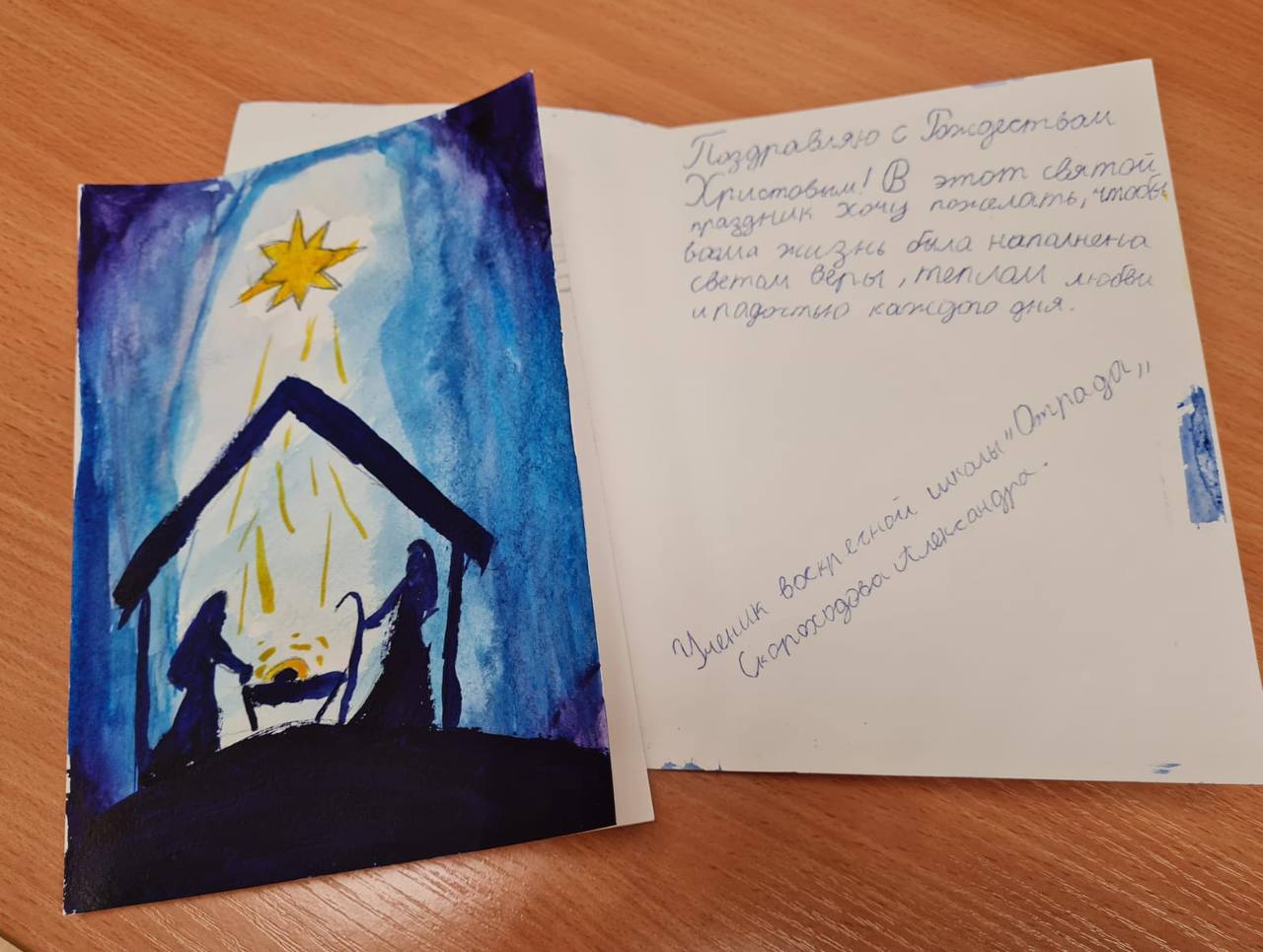 На уроке рисования дети с педагогами подготовили открытки с поздравлениями с Рождеством Христовым для одиноких пожилых людей.