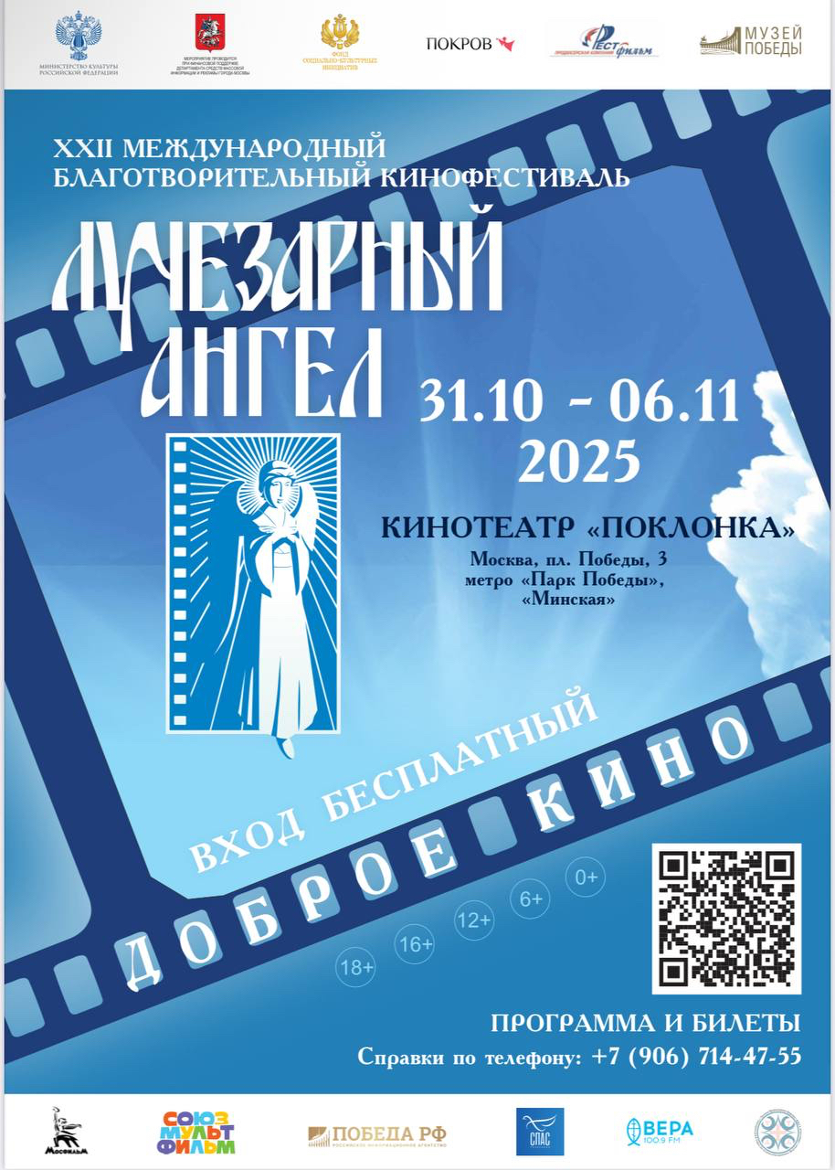 По благословению Святейшего Патриарха Московского и всея Руси Кирилла с 31 октября по 6 ноября 2025 года в Москве в кинотеатре «Поклонка» Музея Победы пройдет XXII Международный благотворительный кинофестиваль «Лучезарный ангел».