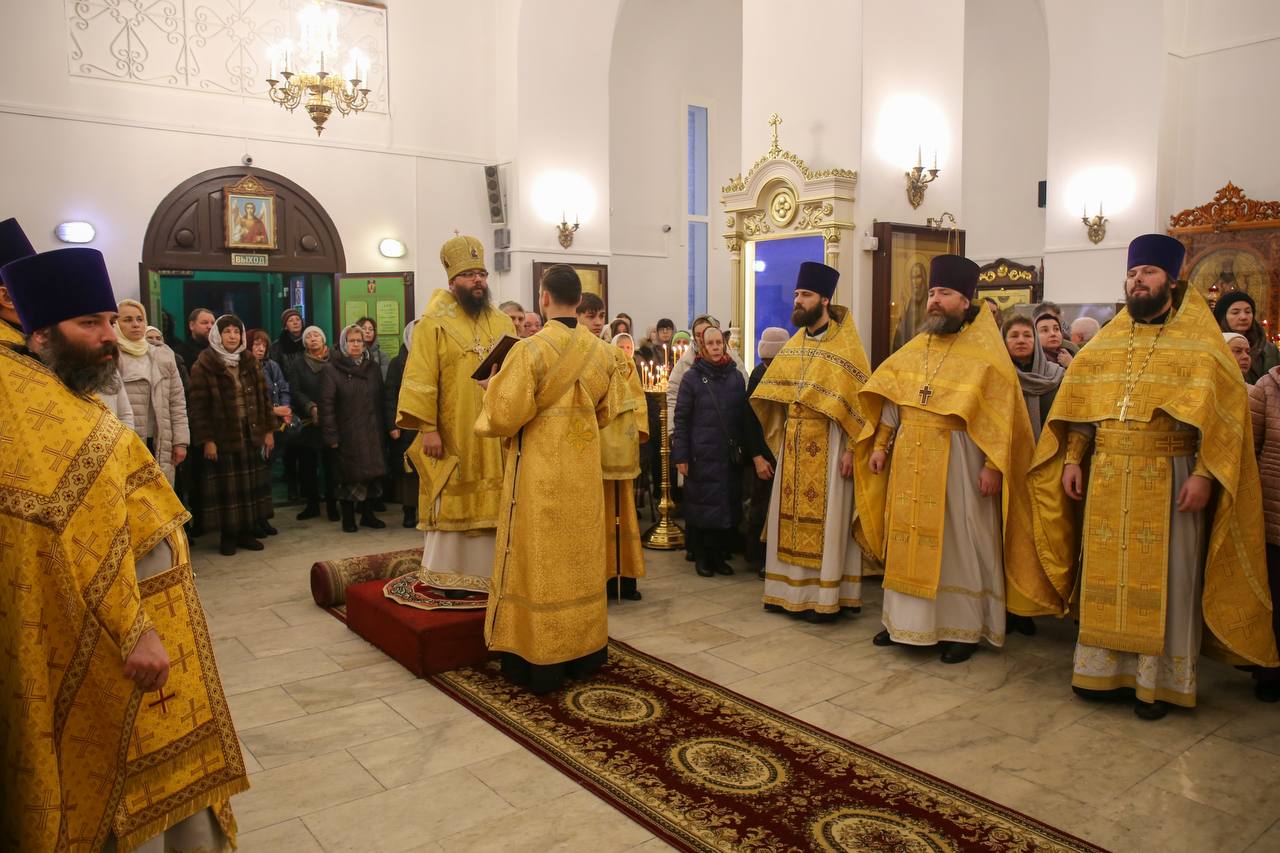 Его Высокопреосвященству сослужили благочинный храмов Сергиевского округа протоиерей Анатолий Алефиров, настоятель храма иерей Дмитрий Киосе, настоятель храма Тихвинской иконы Божией Матери, Патриаршего подворья в Алексеевском г. Москвы иерей Филипп Пономарев, настоятель храма преподобного Сергия Радонежского в Бибиреве г. Москвы иерей Павел Симонов, и клирики иных храмов Северо-Восточного викариатства. Диаконский чин возглавил протодиакон Василий Куфлик, клирик храма Тихвинской иконы Божией Матери в Алексеевском г. Москвы.