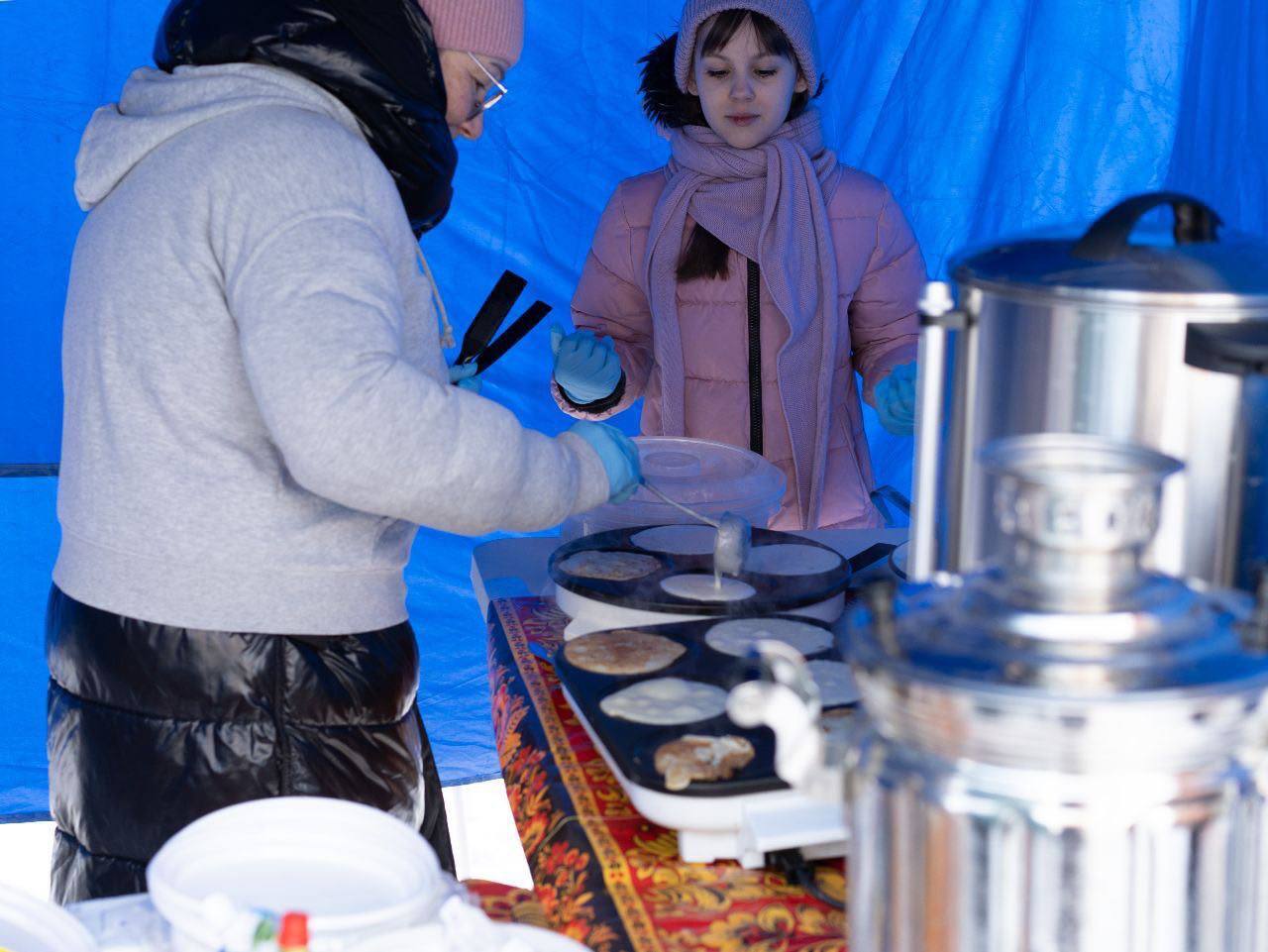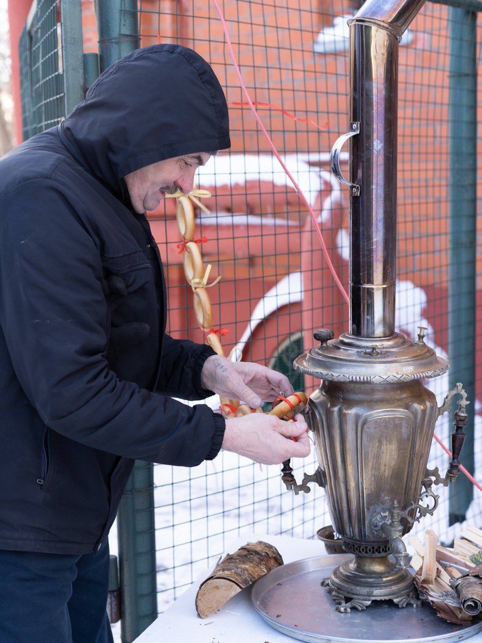 Во дворе храма выпекались блины, а в самоваре тем временем подогревался очень вкусный и горячий чай!