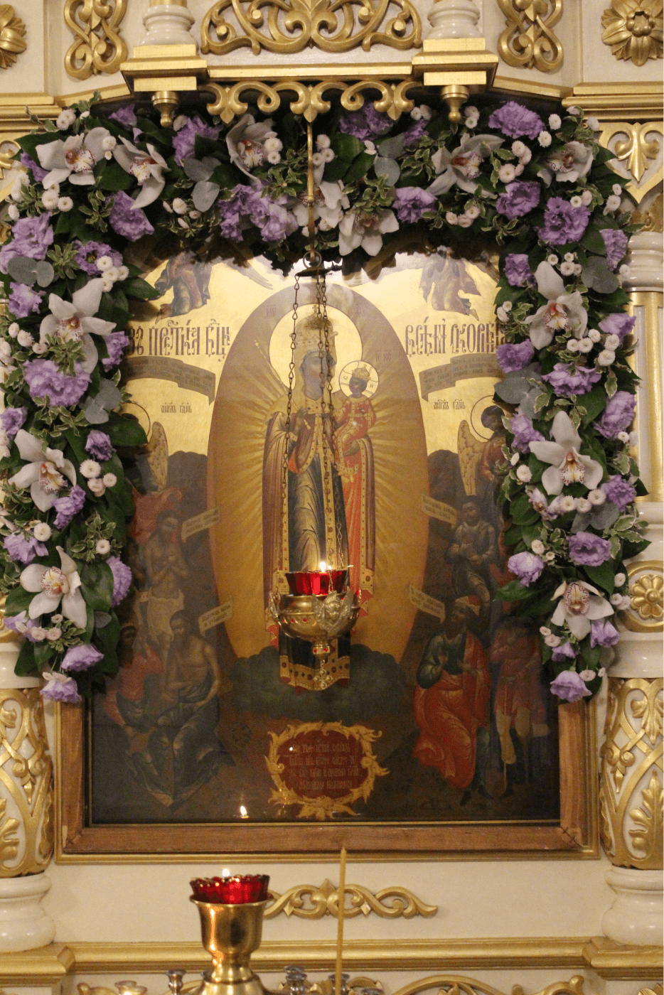Всех скорбящих Радосте и обидимых Заступнице, и алчущих Питательнице, странных Утешение, обуреваемых Пристанище, больных Посещение, немощных Покров и Заступнице, Жезле старости, Мати Бога Вышнего, Ты еси Пречистая, потщися, молимся, спастися рабом Твоим.