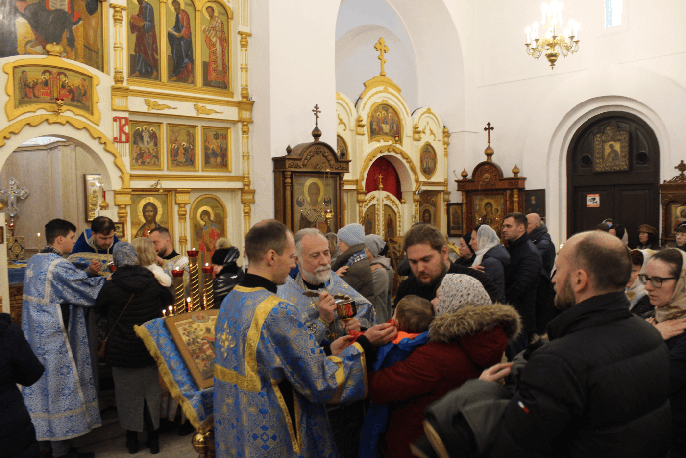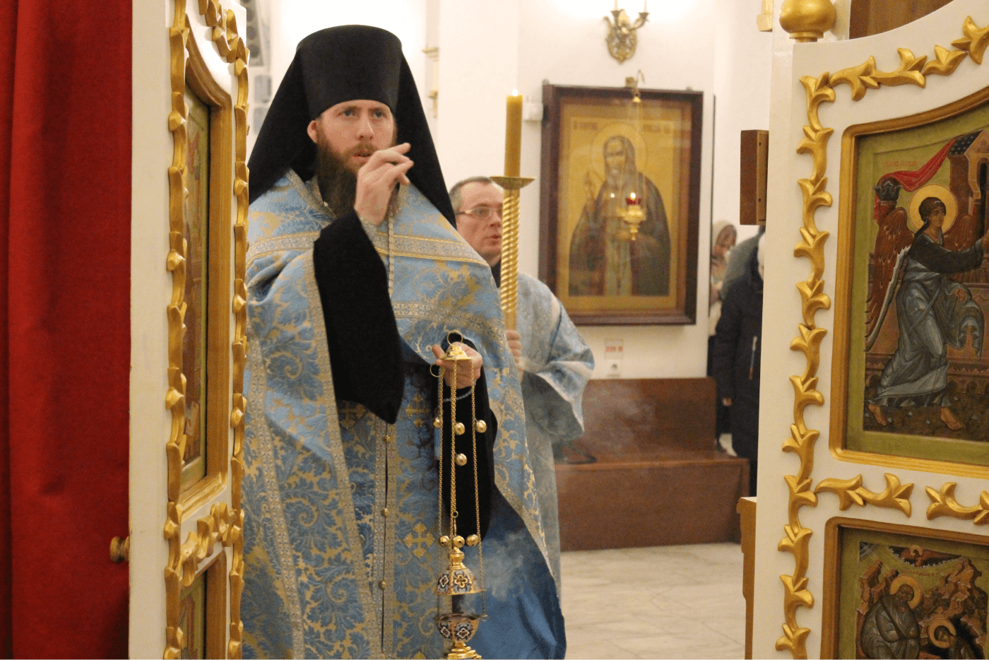 Праздничные богослужения возглавил иеромонах Алексий в сослужении братии храма.